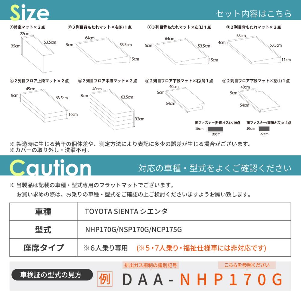 TOYOTAシエンタ6人乗り全席用フラットマットです。