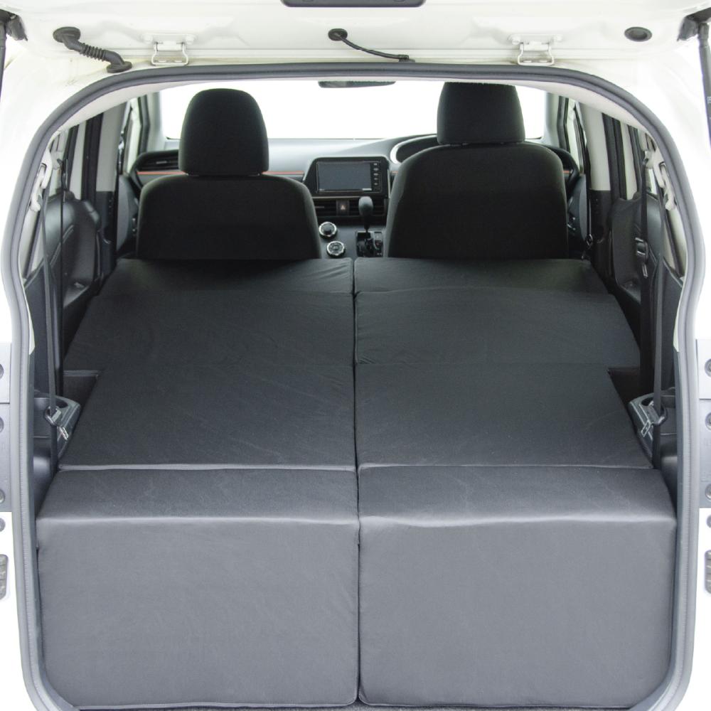 ■シートを倒したときにできる凸凹にフィットしてくれるので、マットやシートをフラットに敷くことができ、快適な睡眠をとることができます。