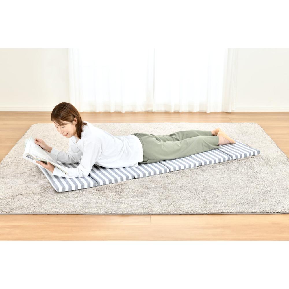 ■広げればごろ寝マット、折り畳めば厚手のクッションやスツールになる便利なクッション。