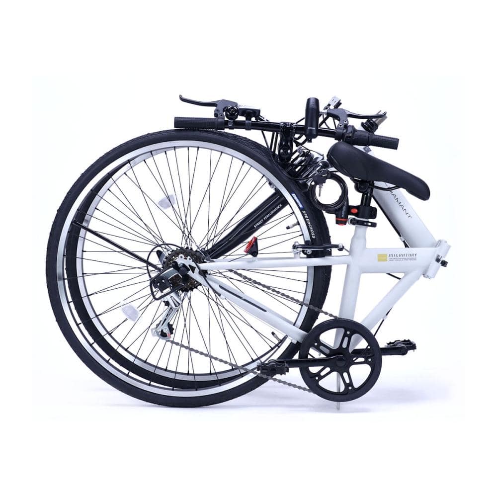 素材/フレーム:スチール、リム:アルミ、前輪ブレーキ:Vブレーキ、後輪ブレーキ:Vブレーキ、 シマノ製変速ギア、フラットタイプ差込式ハンドルバー、フロントキャリア、フロントサスペンション、LEDライト、ホルダー付ワイヤーロック 他