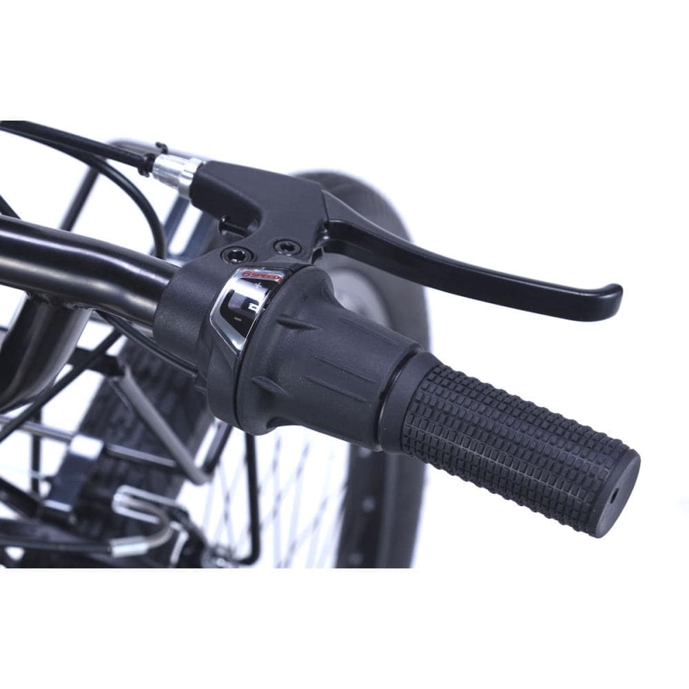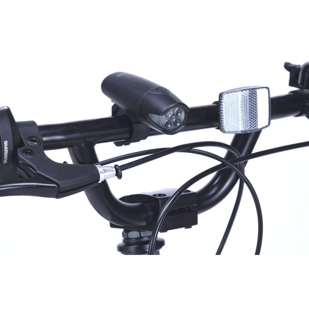 素材/フレーム:スチール、リム/アルミ、前輪ブレーキ:Vブレーキ、後輪ブレーキ:バンドブレーキ、シマノ製変速ギア、BMXタイプ差込式、フロントキャリア、フロントサスペンション、LEDライト、ワイヤーロック、前後マッドガード 他