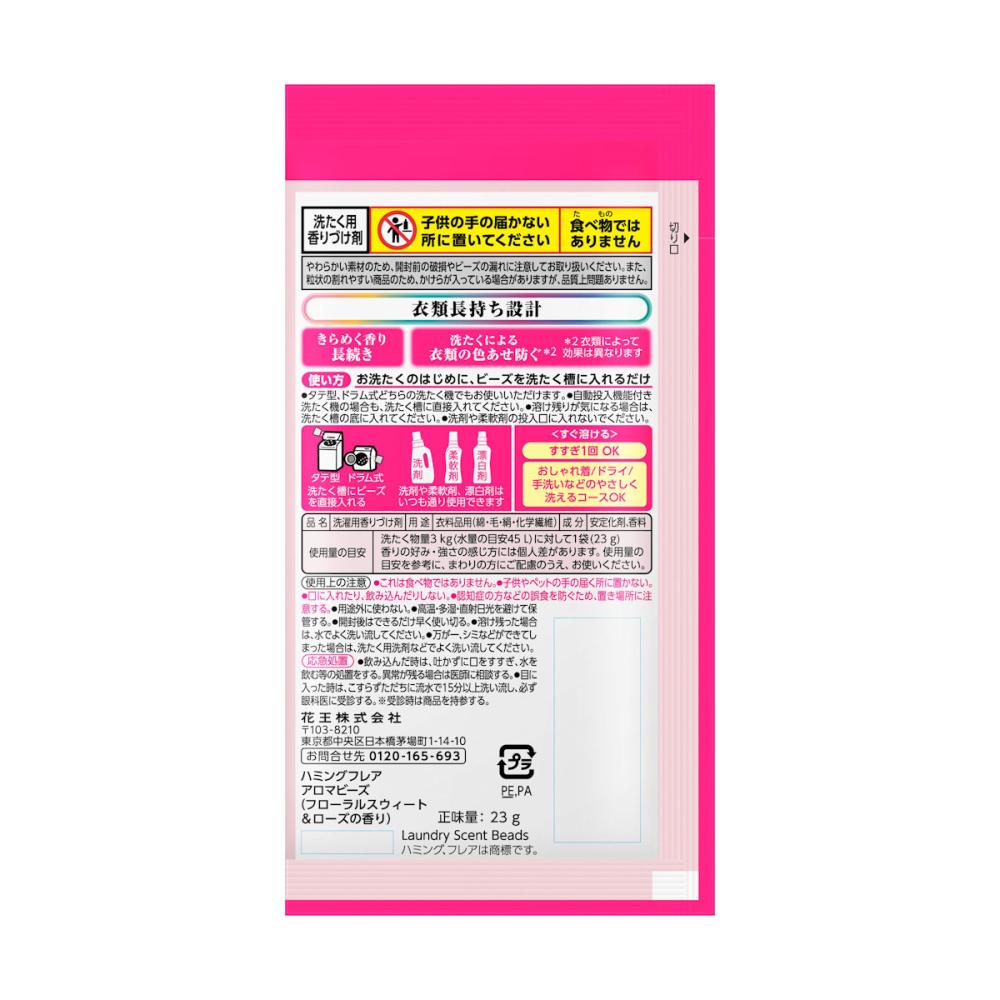 お洗たくのはじめに、ビーズを洗たく槽に入れるだけ。 きらめく香り100日続く*1&洗たく中 色あせ防ぐ*2。 フローラルスウィート&ローズの香り。 ●衣類長持ち設計 ●すぐに溶けるから、おしゃれ着/ドライ/手洗いなどのやさしく洗えるコースOK ●すすぎ1回OK ●タテ型・ドラム式どちらの洗たく機でもお使いいただけます。 *1保管状態で *2衣類によって効果は異なります