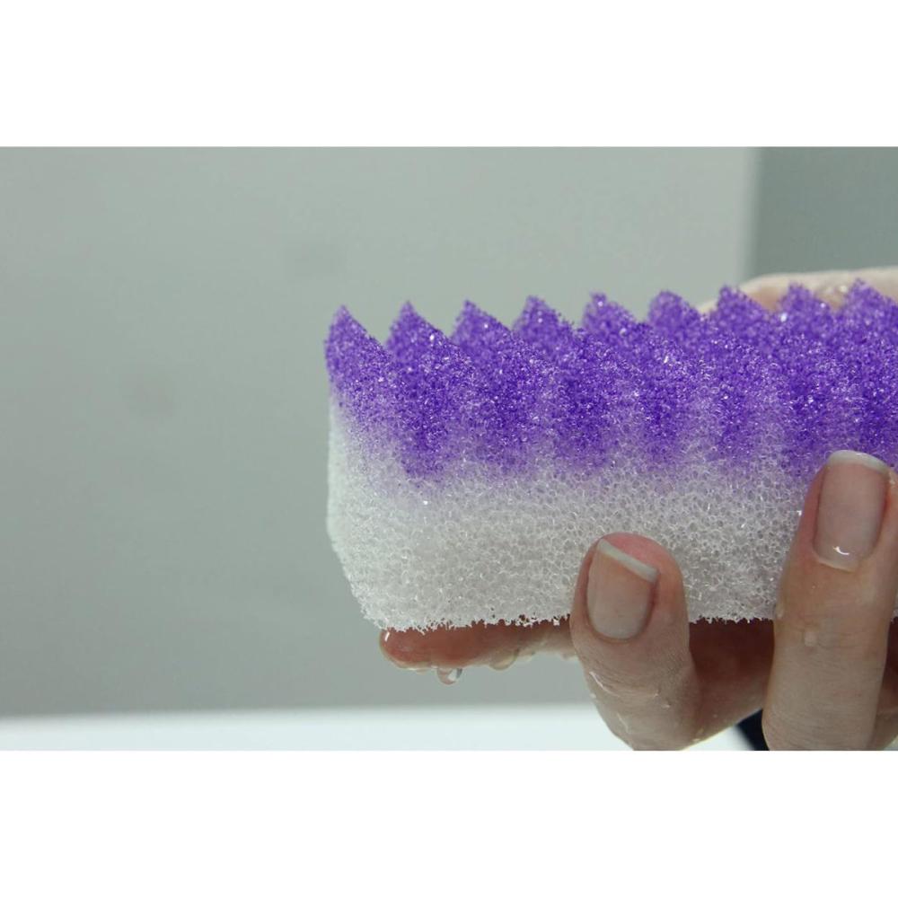あらゆる食器に沿って洗え 、ハサミ洗いもでき 、洗い残しを解消できるスポンジです。