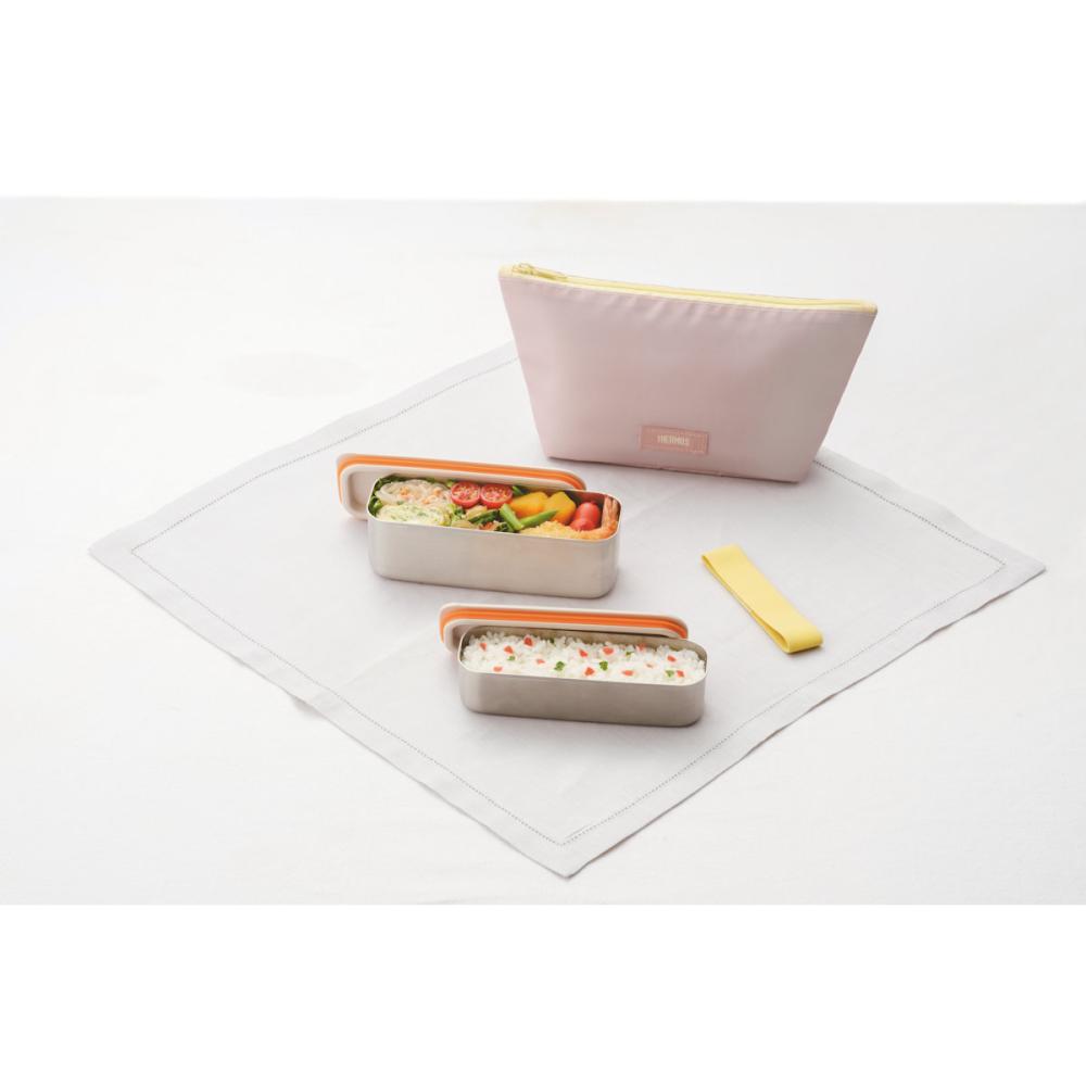 専用保冷ケースとベルトが付属し、容器を積み重ねて持ち運び可能。すべてのパーツが食洗機に対応しているのでお手入れ簡単です。