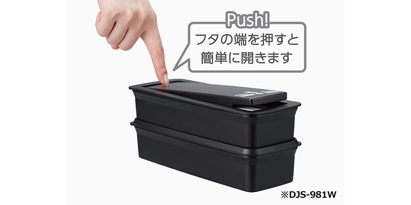 お弁当箱のフタの端を押すと簡単にフタを取り出せます。