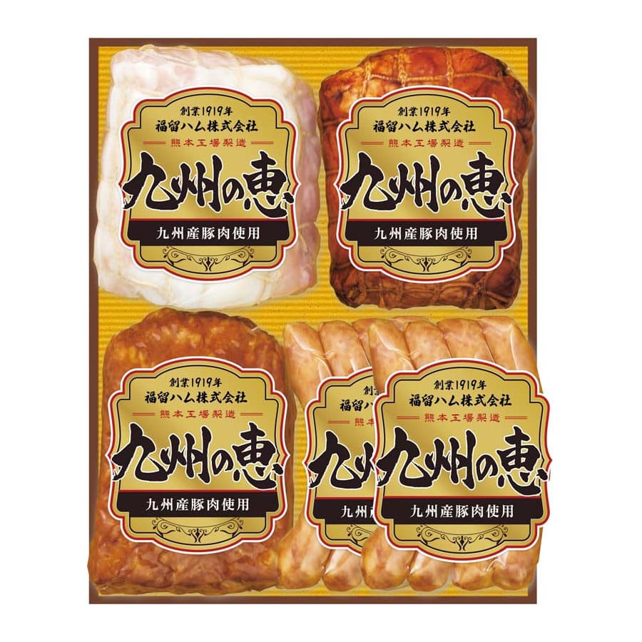 【セット内容】九州産豚肉使用ホワイトロースハム270g、九州産豚肉使用焼豚170g、九州産豚肉使用ポークローフ190g、九州産豚肉使用あらびきウインナー90g×2