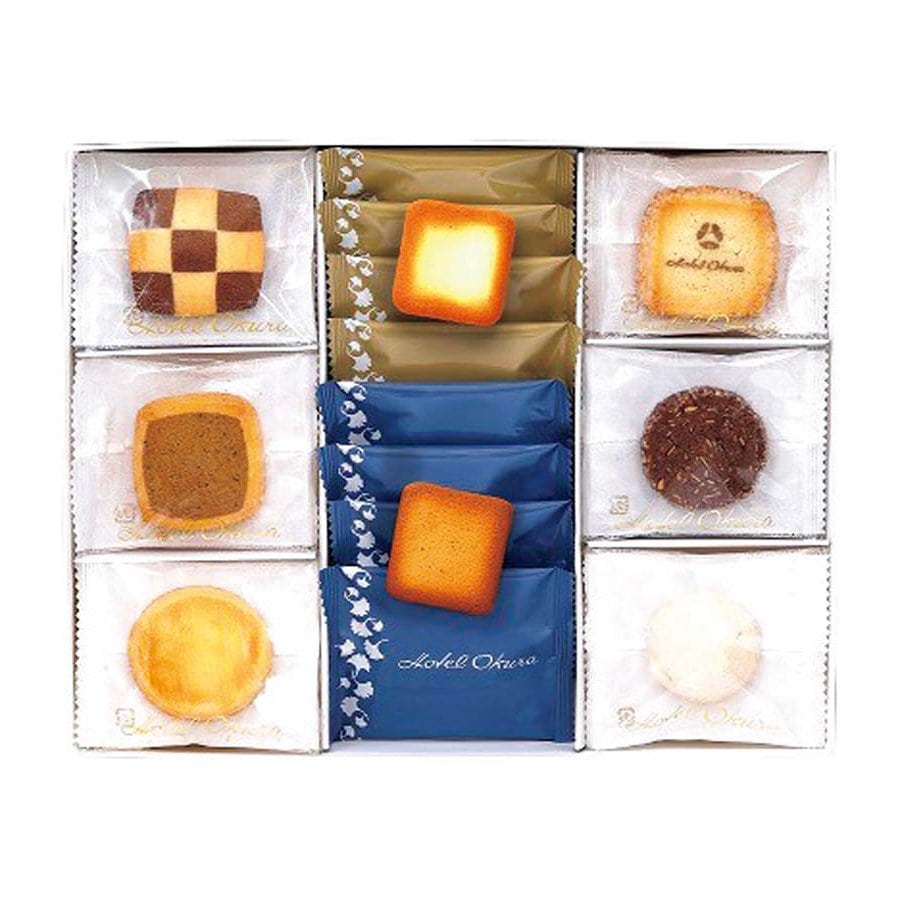 【セット内容】ビスキュイアラバニーユ×3、ビスキュイオパルミジャーノ×3、ショコラアマンド×3、ムラングバニーユ×3、ショコラリュクス×3、ビスキュイオテ×3、ラングドシャショコラ×4、ラングドシャカフェ×4