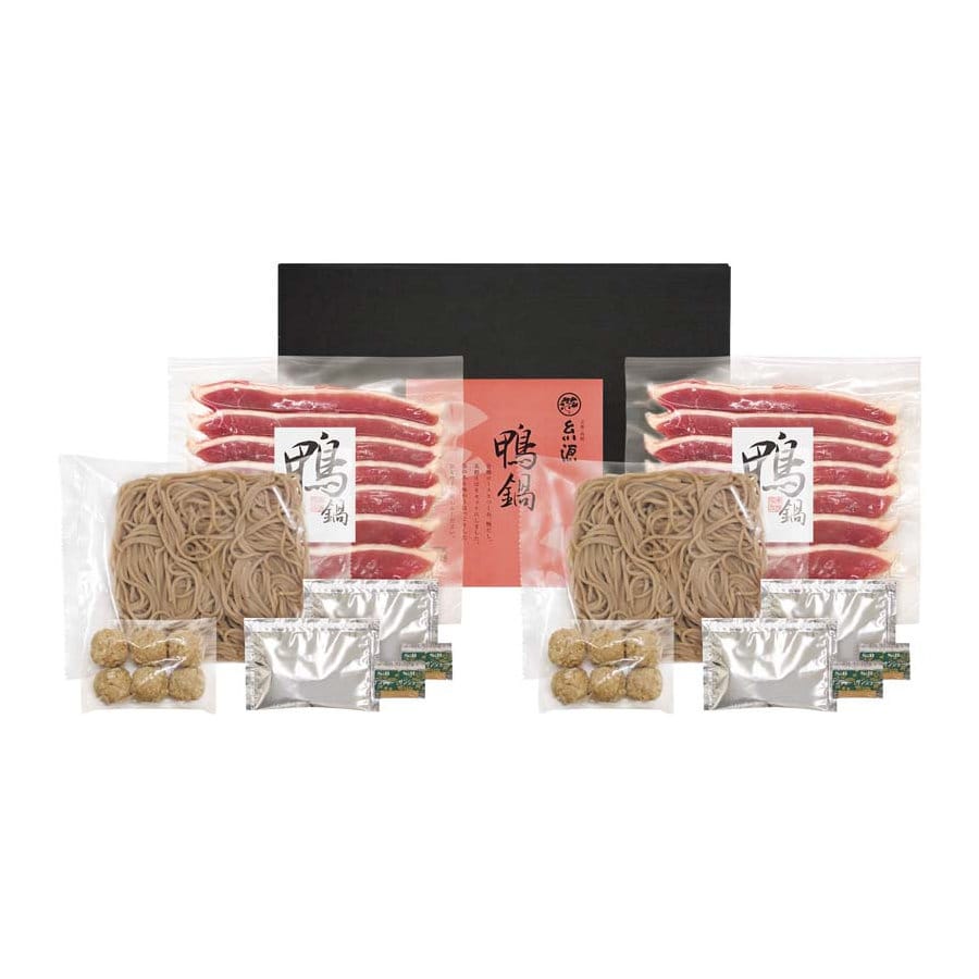 【セット内容】鴨鍋セット4人前【(合鴨ロース約130g、合鴨つくね6個、五割そば200g)×各2、(鴨だし濃縮スープ30g、山椒0.2g)×各4】