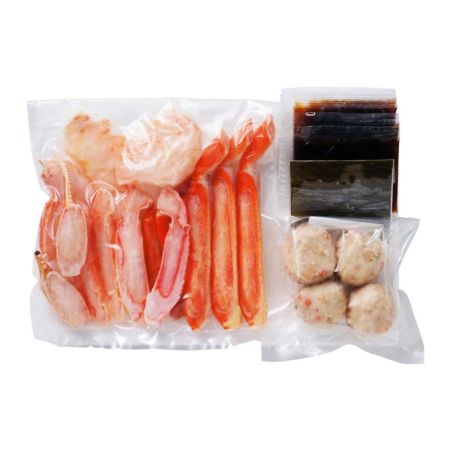 【セット内容】ゆでずわい蟹カット250g、蟹入すり身60g、たれ、昆布原料原産地ずわい蟹(ロシアまたはカナダまたはアメリカまたはノルウェー)
