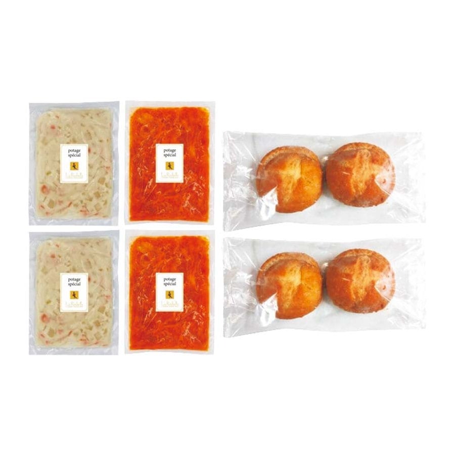 【セット内容】クリームスープ150g×2、ミネストローネスープ150g×2、ブレッドボウル4個