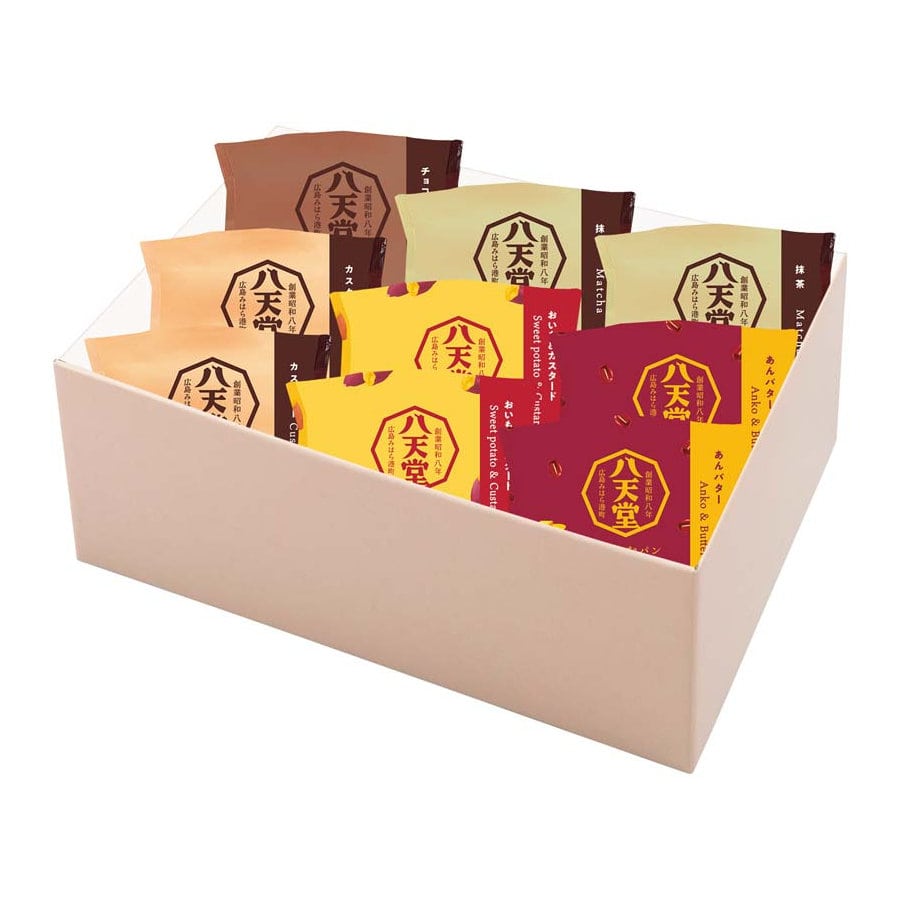 柔らかくって、頬張るとしっとりふんわり。程よい甘さのクリームを入れました。何度食べても はっ とする、とろける食感。くりーむパンあんバター:ふんわりしっとり柔らかな生地の中に、八天堂特製クリームと北海道産小豆を使用した八天堂オリジナルの餡子、バターを入れた3層のくりーむパンです。くりーむパンおいも&カスタード:ふんわりしっとり柔らかな生地の中に、バターを加えたコクのある焼き芋ペーストと、軽くてくちどけの良いクリームを入れました。