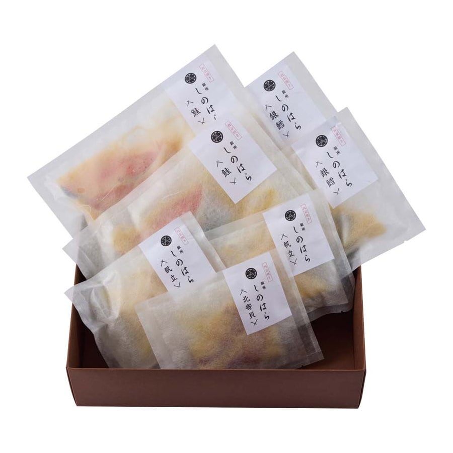 日本の原風景を皿に盛る「銀座しのはら」常に日本料理界を牽引する篠原シェフが厳選した素材で監修した西京焼きです。シェフ自身が、日本の食卓にずっと、何年後も何十年後も何百年後も残っていてほしい料理だと語る西京焼きは、「銀座しのはら」でもコースの頂点として登場する八寸の中に入れられることもある人気のメニュー。お酒にも、ご飯にも合う西京焼きは、酒のアテとして最適な北寄貝、帆立貝。定番、王道の銀鱈。白いご飯にぴったりな脂の乗った鮭の4 種類。シェフ監修の西京焼きを、ご家族皆様でお楽しみください。