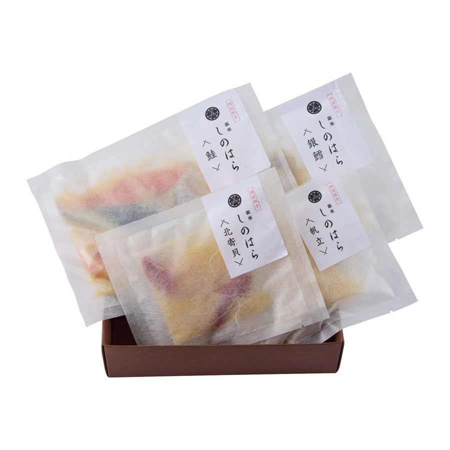 日本の原風景を皿に盛る「銀座しのはら」常に日本料理界を牽引する篠原シェフが厳選した素材で監修した西京焼きのミールキットです。シェフ自身が、日本の食卓にずっと、何年後も何十年後も何百年後も残っていてほしい料理だと語る西京焼きは、「銀座しのはら」でもコースの頂点として登場する八寸の中に入れられることもある人気のメニュー。お酒にも、ご飯にも合う西京焼きは、酒のアテとして最適な北寄貝、帆立貝。定番、王道の銀鱈。白いご飯にぴったりな脂の乗った鮭の4 種類。シェフ監修の西京焼きを、ご家族皆様でお楽しみください。