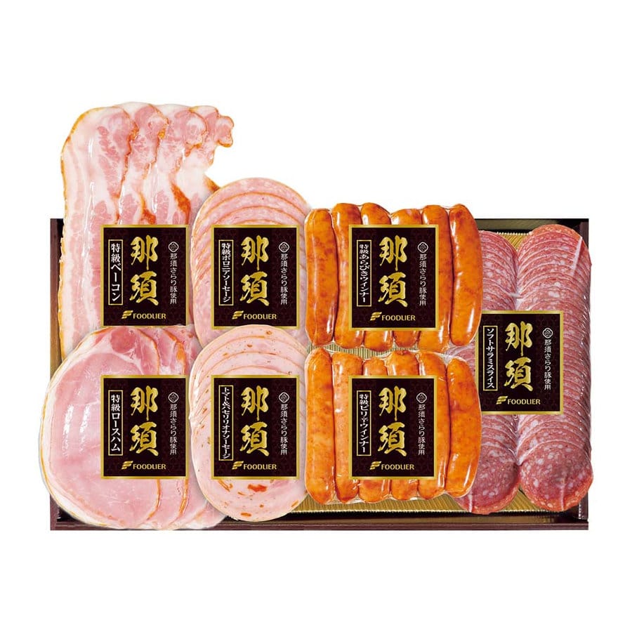 【セット内容】特級ロースハム100g、特級ベーコン90g、上級トマトリオナソーセージ110g、特級ボロニアソーセージ110g、ソフトサラミ120g、特級ウインナー(あらびき、ピリ辛)各140g