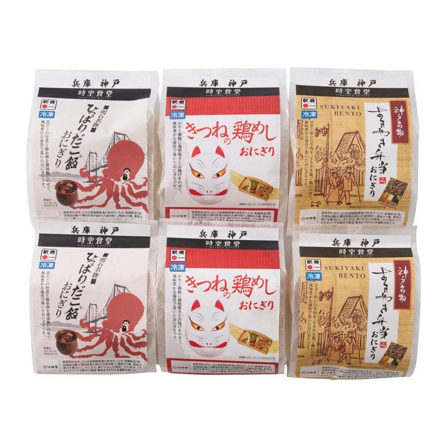 【セット内容】ひっぱりだこR飯おにぎり、きつねの鶏めしおにぎり、神戸名物すきやき弁当おにぎり各95g×各2