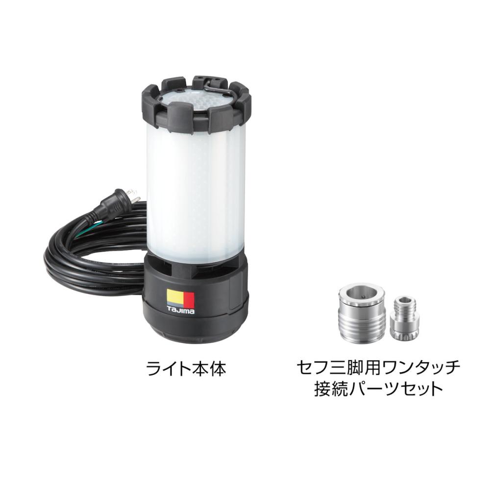 ●天面+水平全周の照射面で全方位を照射 ●三脚、セフボックスに取付けて使用が可能 (セフボックスは三脚と専用パーツが必要) ●三脚への据付けが容易なワンタッチ接続が可能 ●引っ掛けやすい大型フック採用(開口部φ56mm) ●レーザー墨出し器三脚にも取付けできる5/8inchネジ採用 ※付属パーツ使用 ●連結用コンセント1口付。電源1口から複数台のワークライトを 連結して使用可能(最大10台、合計1000Wまで) ●連結せずに本製品を単独で使用する時はIP65相当 ●ケーブル長:5m