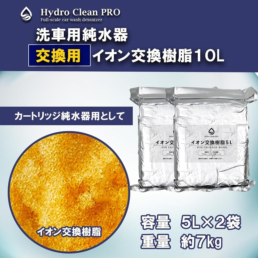 【非再生&高グレード樹脂】 ●H形強酸性陽イオン交換樹脂(カチオン)とOH形強塩基性陰イオン交換樹脂(アニオン)の混合比率が「1:1.5」の純水品質や純水生成量に優れた最高グレードの業務用新品イオン交換樹脂になります。 各種純水器のフィルター交換詰替用に ●本製品は水道水のイオン成分を除去する純水器の交換詰替用として使えます。5Lの真空小分け包装となっておりますので小型純水器やカートリッジ純水器の詰め替え用としても便利にお使い頂けます。 純水は自動車等の洗車や窓拭きにも ●カルシウムやマグネシウムなどのイオン成分を含まない純水は、洗車時に利用するほか、窓拭きやバッテリー補充液、ウィンドウォッシャー液、クーラントの補給水にもご使用いただけます。 純水の使い方は無限大 ●マグネシウムやカルシウム等の結晶化する物質が入っていない純水は、加湿器やスチーマーなどの蒸気用水、ガラス器具や実験器具の洗浄、アクアリウムの水質保持にもご使用いただけます。 劣化を防ぐ真空包装 ●有機物となるイオン交換樹脂の酸素や乾燥による劣化を防ぐ為に、真空包装でのお届けとなります開封後はすぐにご使用下さい。 ※気圧の影響で袋が膨らんでいる場合がありますが品質に影響はありません。