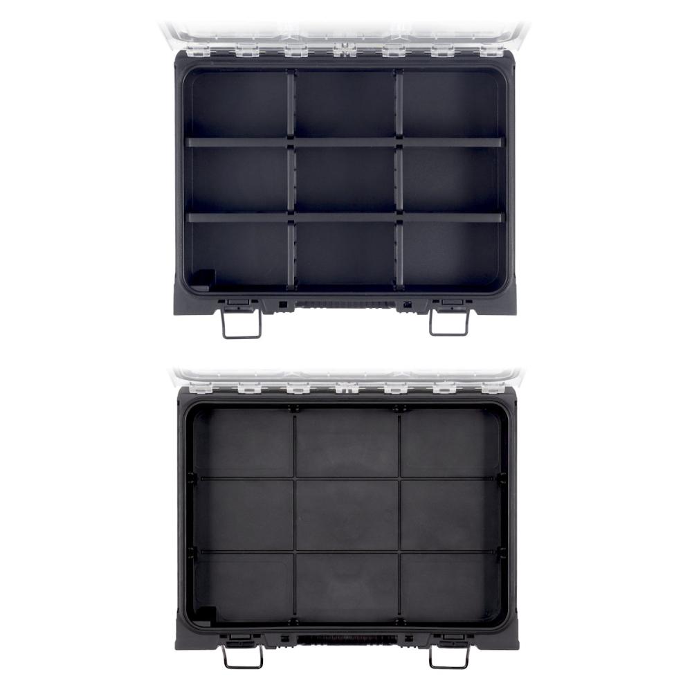●セフ引出しボックス2段セット用のフタ付き仕切りトレイ ●透明なトップカバーでフタを開けずに中身の確認が可能 ●持ち運びが簡単なハンドル、付け外し可能な仕切りセット付 ※セフ引き出しボックスLには対応していません。