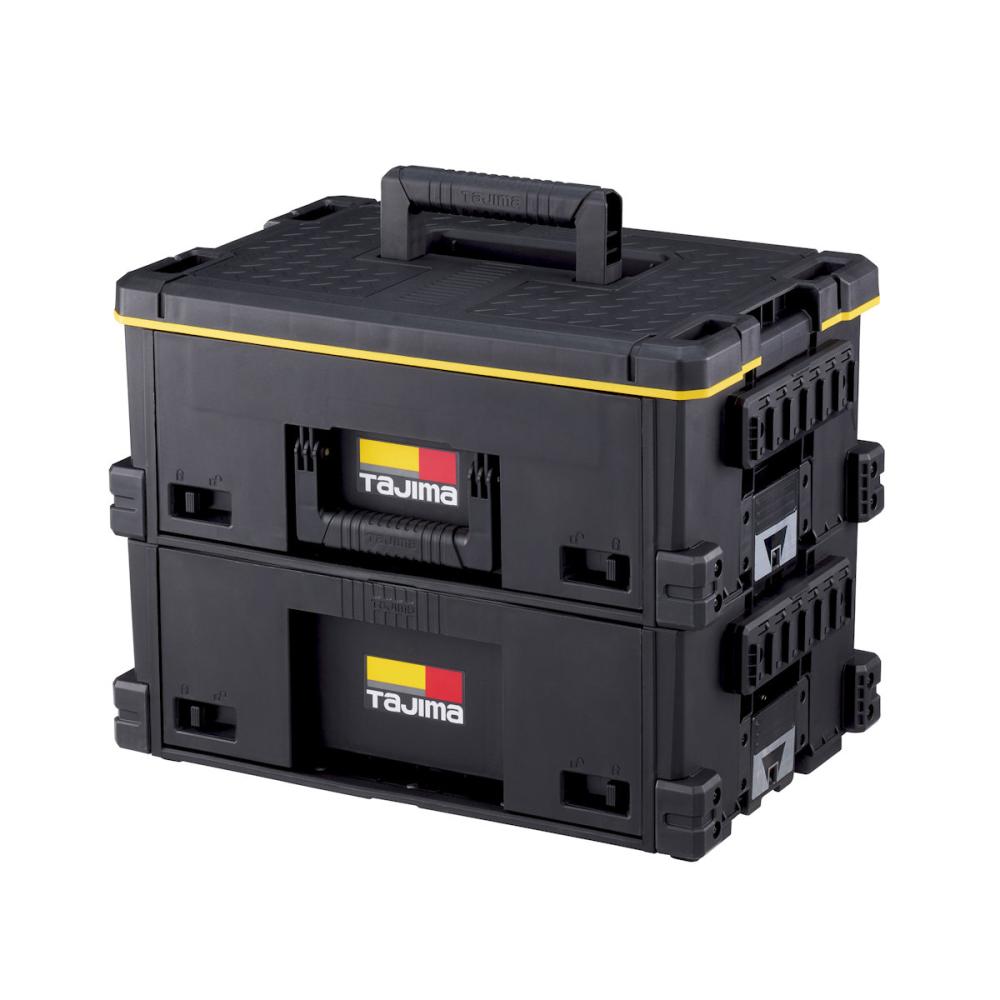 ●引出し上段にはセフ防水パーツケースM4個付属 ●ボックス外側にセフホルダー機能(24個)を搭載 ●重ねて置くだけでしっかりと連結する荷崩れ防止仕様 ●スムーズな引き出し&トレイが簡単に取り出せる“特殊スライドレール構造”を採用