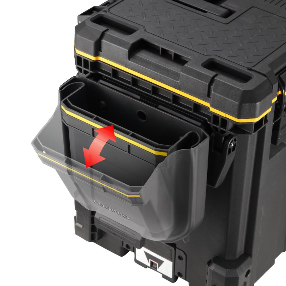 ●裏面セフフック×2 ●セフフック付なのでツールボックスや腰周りにも付けられます。 ●床置きも可能 ●セフフック付でツールボックスや腰周りへの着脱ができ、床置きすることも可能 ●折りたたみ式なので、狭い場所や入れる道具に応じてサイズ調整が可能 ●セフ取付総重量:3.0kg 以下まで