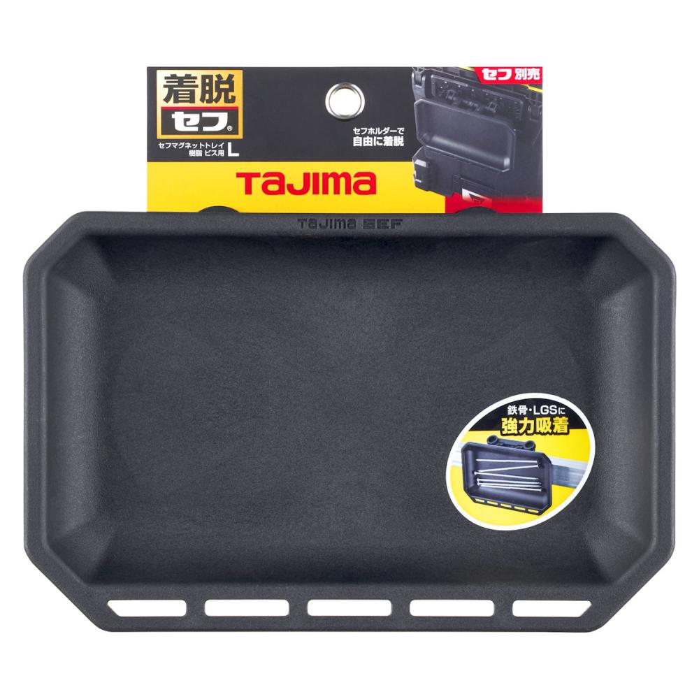 ●裏面セフフック×2 ●マグネットで鉄骨やLGSに付けたり、セフフックで腰周りやツールボックスへの着脱が可能なスチール製ビス用のトレイ ●取付可能総重量:1.5kg