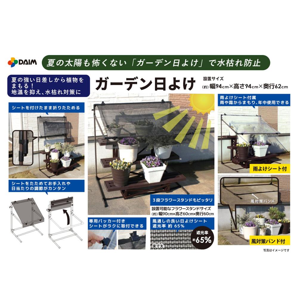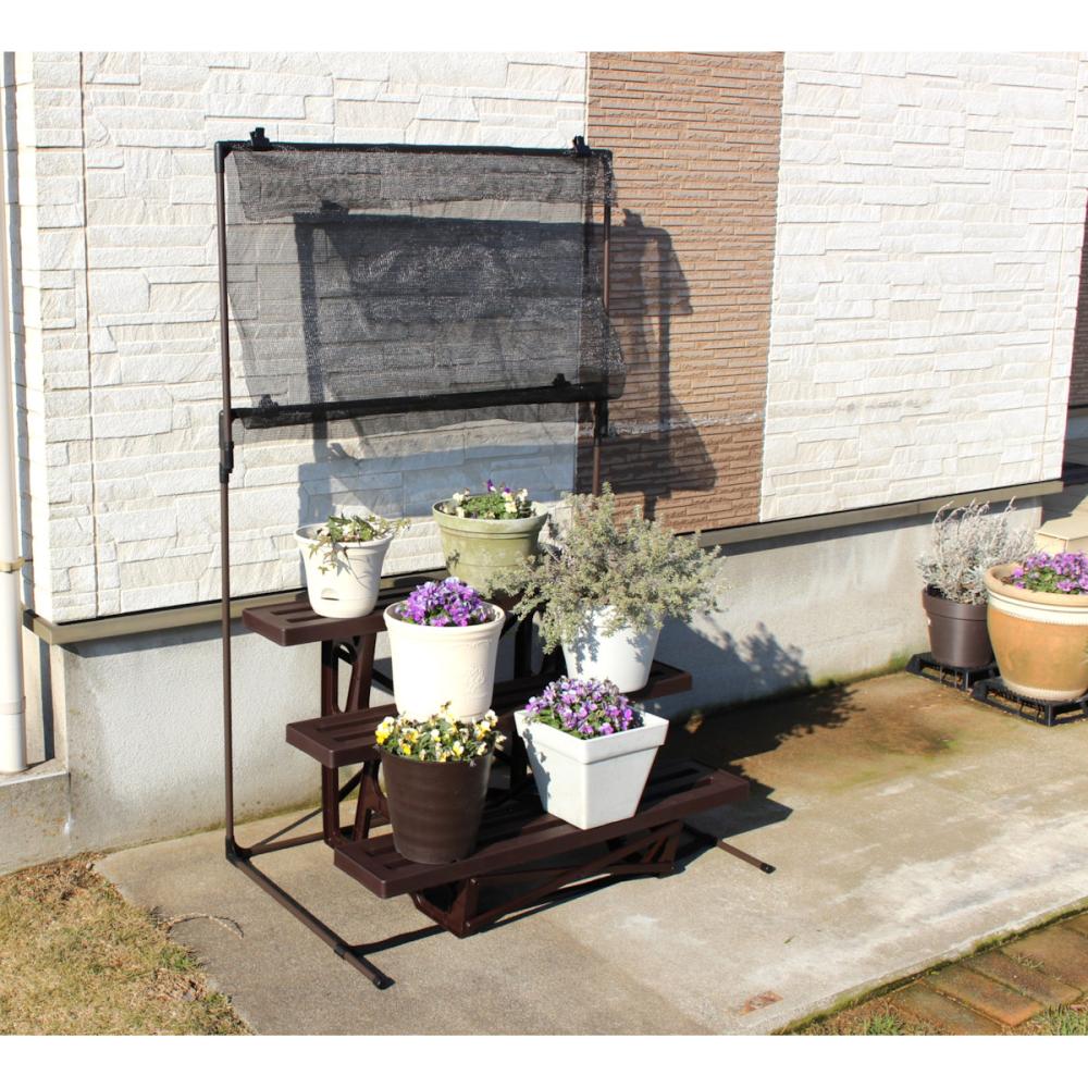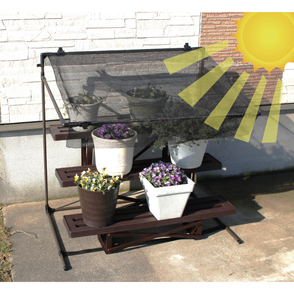 遮光率約65%風通しの良い日よけのシートにより夏の強い日差しを和らげ植物を守る。
