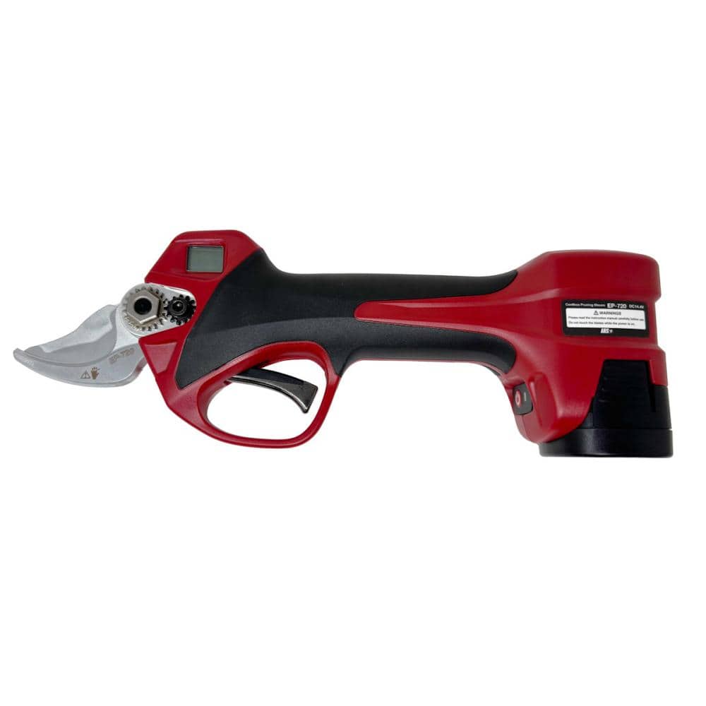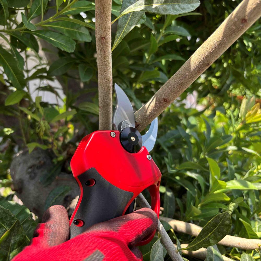 ●プロの果樹農家・造園業者向け充電式剪定鋏です。 ●生木30mm迄の枝が剪定可能です。 ●刃の開きを2段階で調整可能です。 ●素手で使用の際は安全装置が作動します。※手袋装着時は作動しないのでご注意ください。 ●切り刃は3段刃仕様です。ダブルコーティングメッキ。 ●受け刃は鍛造刃で滑り止め防止機能。