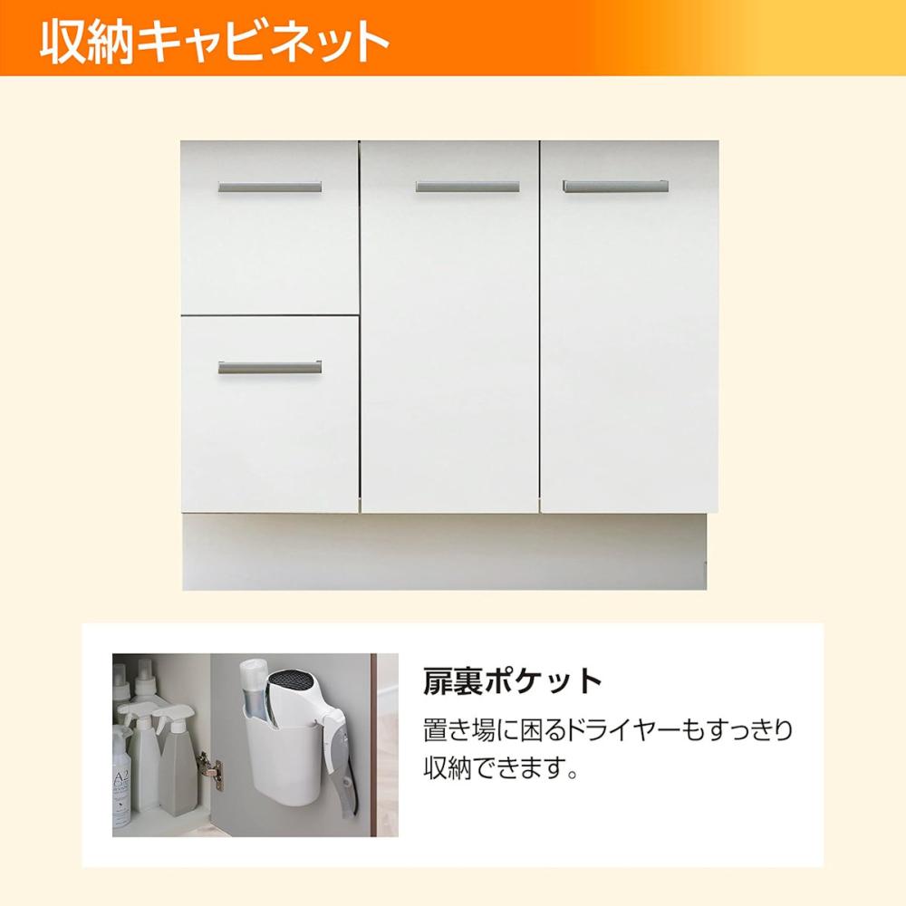 扉タイプ:開きタイプ高さ85cm/カラー:クリエダーク/洗面ボウル材質:人造大理石/洗面ボウル容量:20L(幅75cm)/水栓:ホース引出式壁付け洗髪シャワー水栓(左右に180度回転。使いたい位置にくるりと回せるくるくる水栓)/排水:ポップアップ排水栓、ヘアキャッチャー付き(新てまなし排水口)