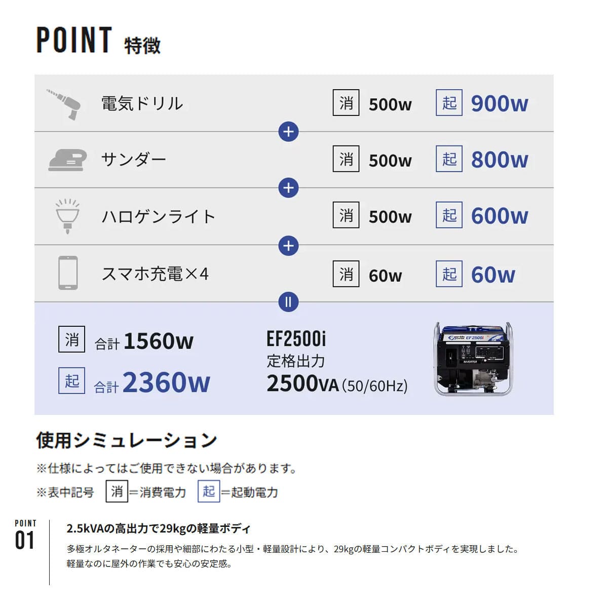 ●「優れた大容量出力、耐久性、静粛性を備えた発電機」