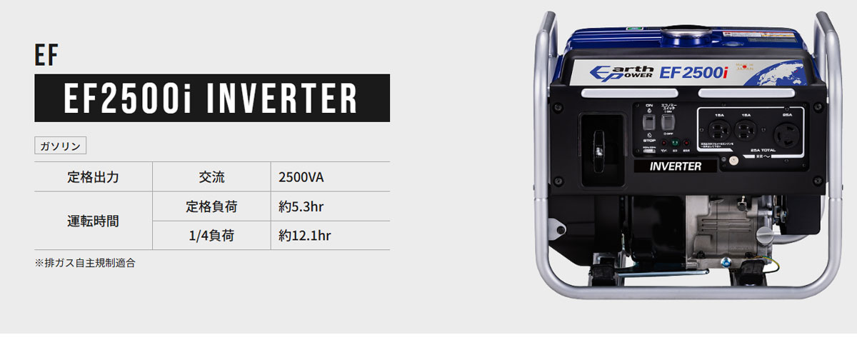 | 連続運転時間 | 定格負荷時hr | (1/4負荷~定格負荷)約12.1~約5.3 | |
