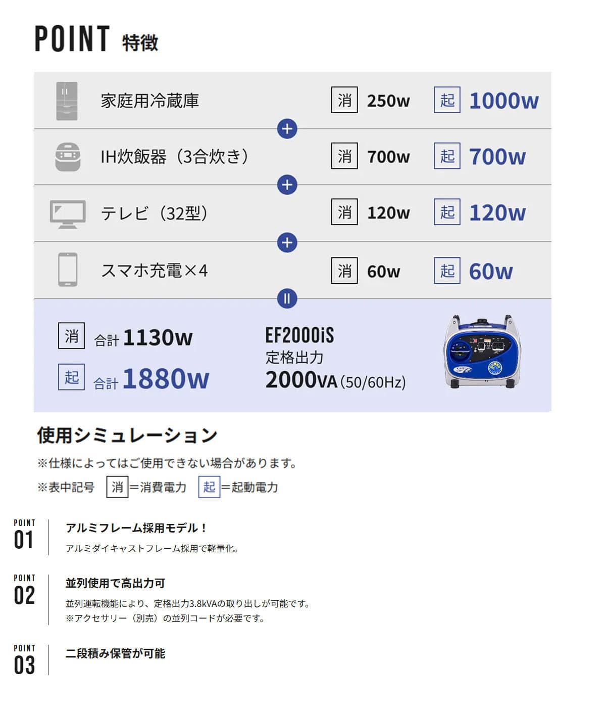 ●「優れた大容量出力、耐久性、静粛性を備えた発電機」