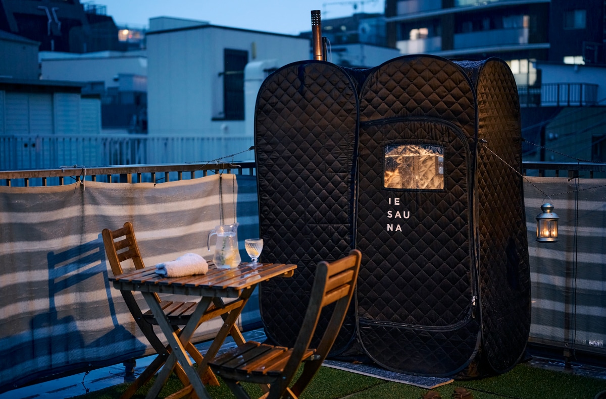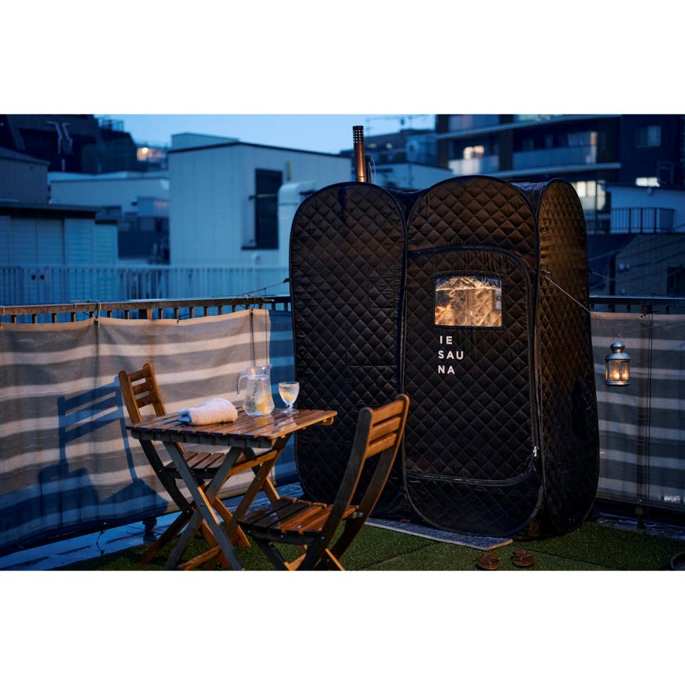 ●熱源がバイオエタノールなので、電気工事も薪の処理も不要。 ベランダやバルコニーなどの省スペースでゆったり一人で入れるサウナ。簡単ワンタッチテントでどこでも思う存分サウナを楽しむことができます。