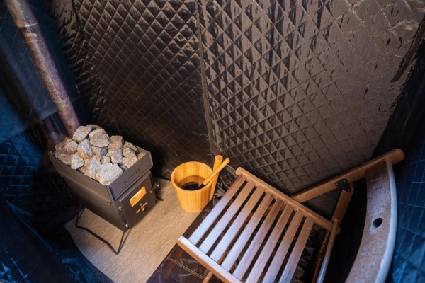 ●コンパクトに収納できるため移動も簡単。サウナ施設へわざわざ行かなくても、お家で本格サウナができる。あなただけのプライベートサウナ。自分のタイミングでロウリュをしたり、アロマを楽しんだり、 あなただけのサウナが出来上がり。