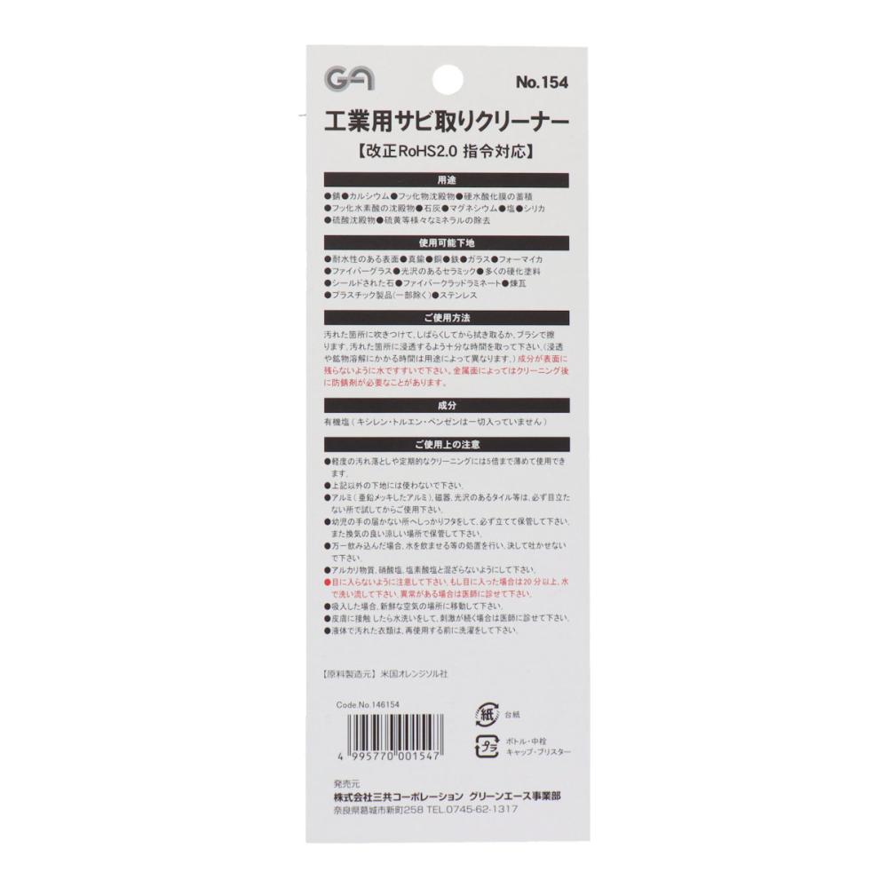 ●“リン酸”や“キシレン”“トルエン”“ベンゼン”などの総称である「揮発性有機化合物(VOC)」を使用しない、人と地球環境にやさしい『天然オレンジオイル』を配合したサビ取り剤です。 ●従来のサビ取り剤に比べて、安全性が高いため、カルシウムやミネラル汚れなど定期的なクリーニングにも使用可能。 【主な用途】 ●金属に付着した錆の除去 ●カルシウム、フッ化物沈殿物、シリカ、石灰汚れの除去 ※軽度の汚れ落としや定期的なクリーニングには5倍まで薄めて使用できます。 【成分】 ●有機塩 ●オレンジオイル ※キシレン・トルエン・ベンゼンは一切入っていません。 【ECOシリーズとは】 アメリカ製の「天然オレンジオイル」を配合したECOクリーナーシリーズ。油汚れや接着剤剥がし、錆取りなど用途に分けて5つのアイテムがライナップ。改正RoHS2.0指令制限の10物質をはじめ、“キシレン”“トルエン”“ベンゼン”“リン酸”を含まない、人にも地球環境にも優しい製品群です。化学製品の安全性に厳しいとされているアメリカでは当製品が、作業員の安全性と地球環境にもやさしいと高評価を受け「鉱業」「運輸・物流業」「建設・農業機械メーカー」「交通インフラ会社」などを中心に多くの大手企業にて正式採用されています。