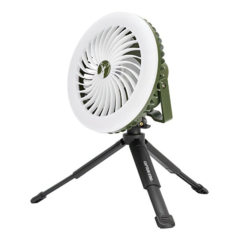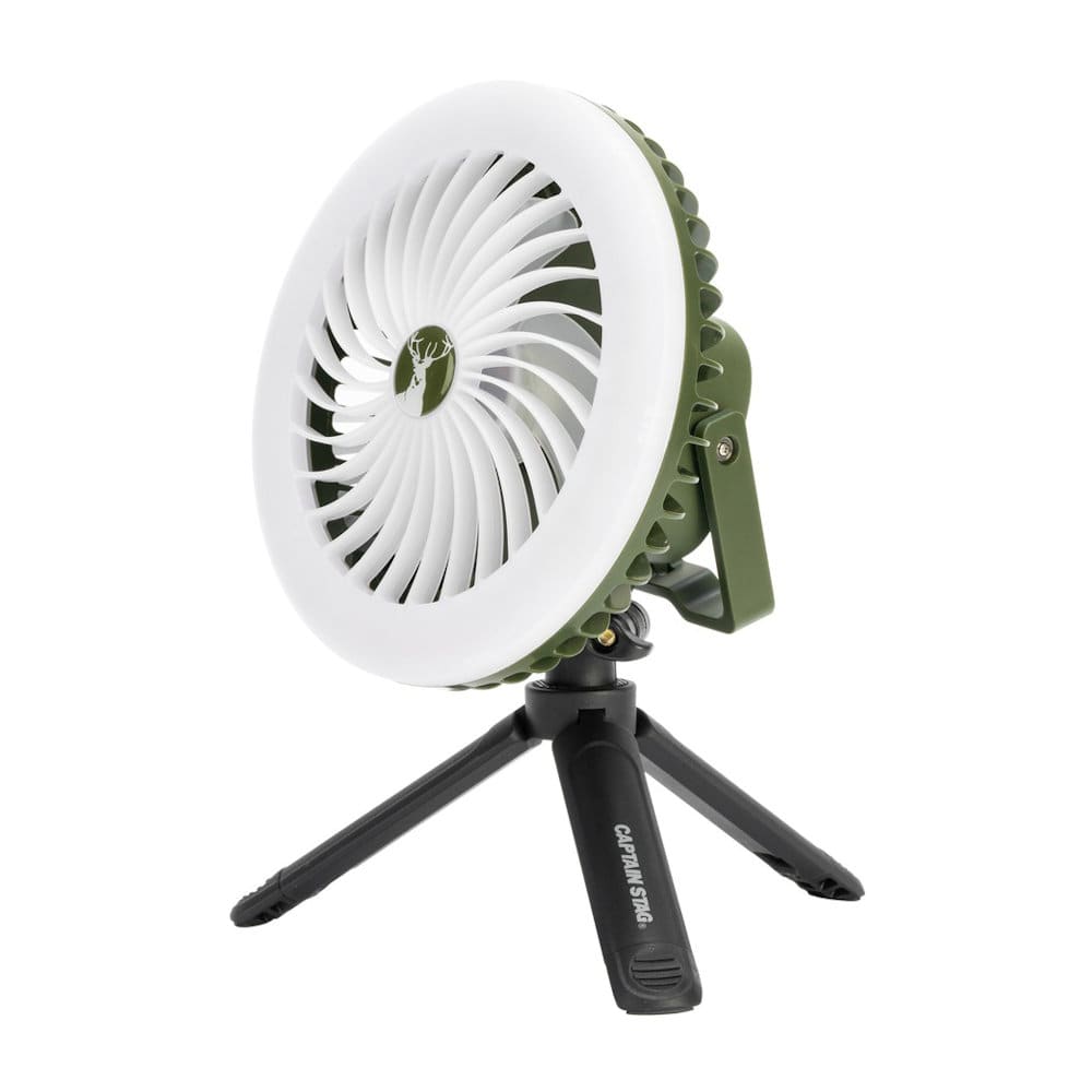 材質(品質)/本体:ABS樹脂、羽根:ポリプロピレン、三脚:ナイロン・ポリプロピレン・鉄(亜鉛めっき) 仕様/その他/明るさ:HIGH=150ルーメン、LOW=15ルーメン 連続使用時間(約)/ライトのみ:HIGHモード=4時間、LOWモード=8時間 ファンのみ:HIGHモード=5時間、MIDDLEモード=7時間、LOWモード=9時間 光源:チップ型LED(発光ダイオード)96個 電源:リチウムイオン電池5000mAh/3.7V 充電時間:約6時間 セット内容:本体×1、スタンド(三脚)×1、Type-C USBケーブル×1