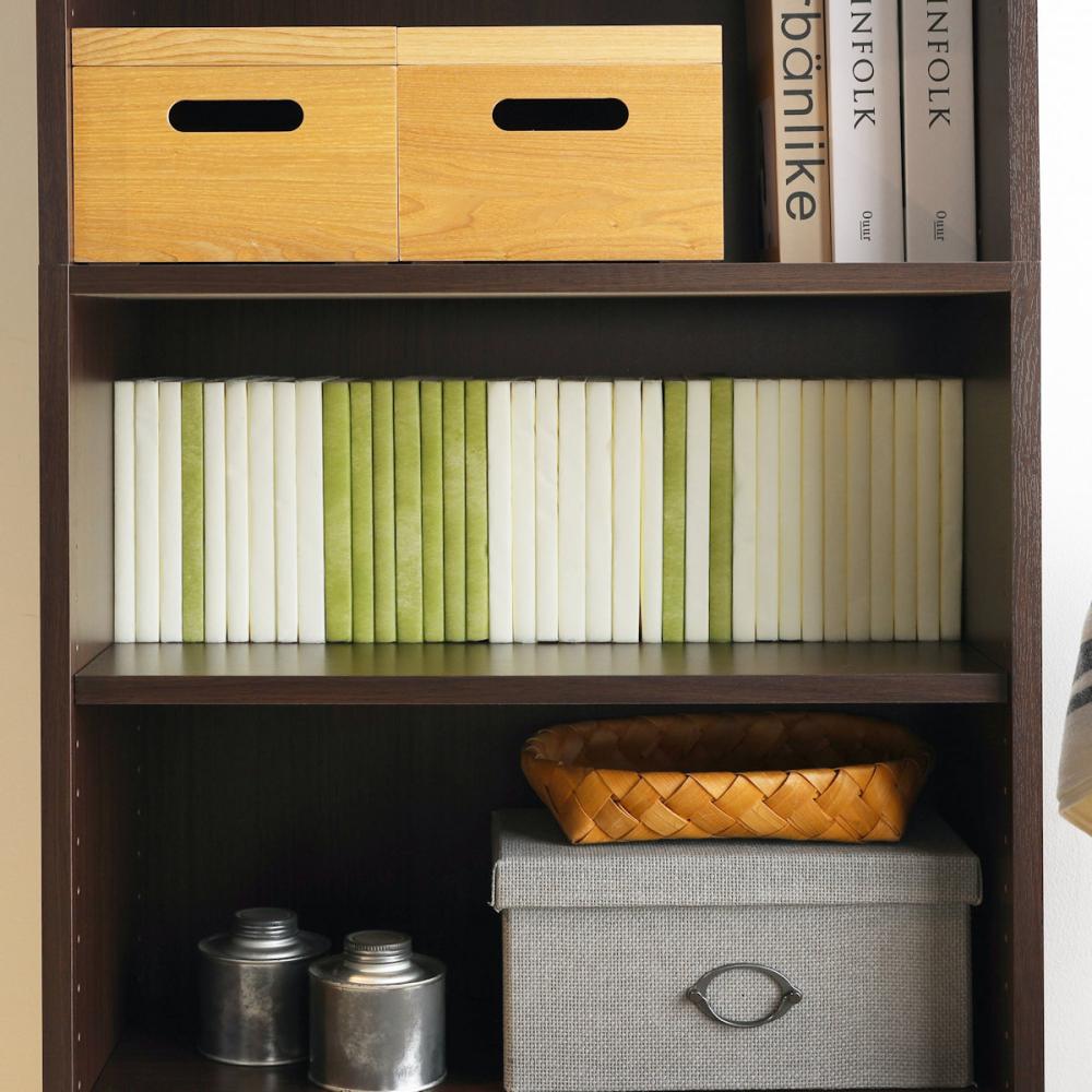 ■棚の内寸奥行26.4cmで、文庫本やコミック(新書判)を前後に並べて収納できます。