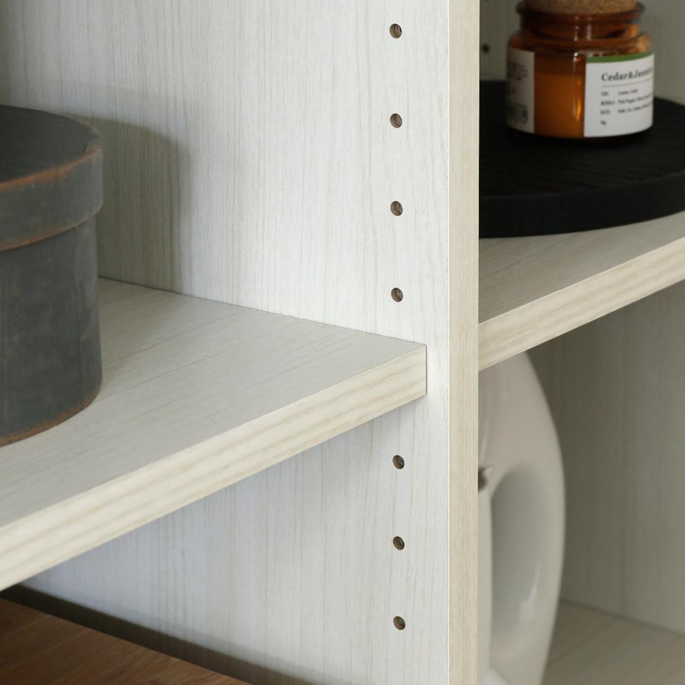 ■4枚の棚板は3cm間隔で高さを調節できる移動棚です。収納したい物に合わせて棚の高さを決めることができます。