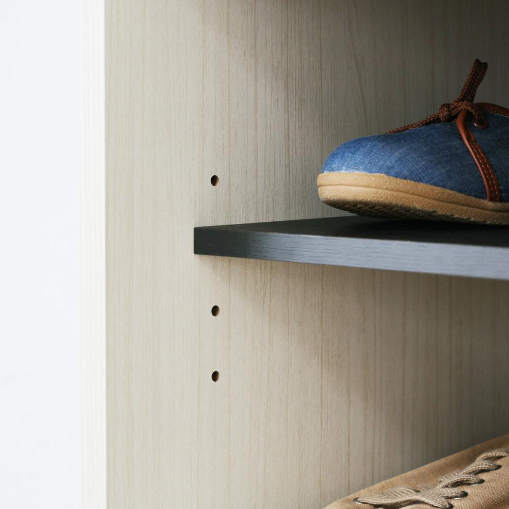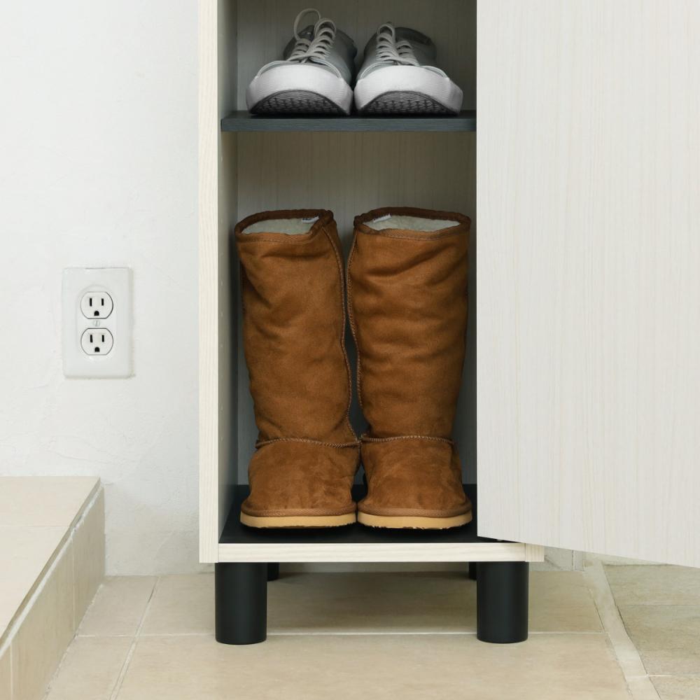 また、下段の移動棚を外して使えば、背の高いブーツも収納可能です。
