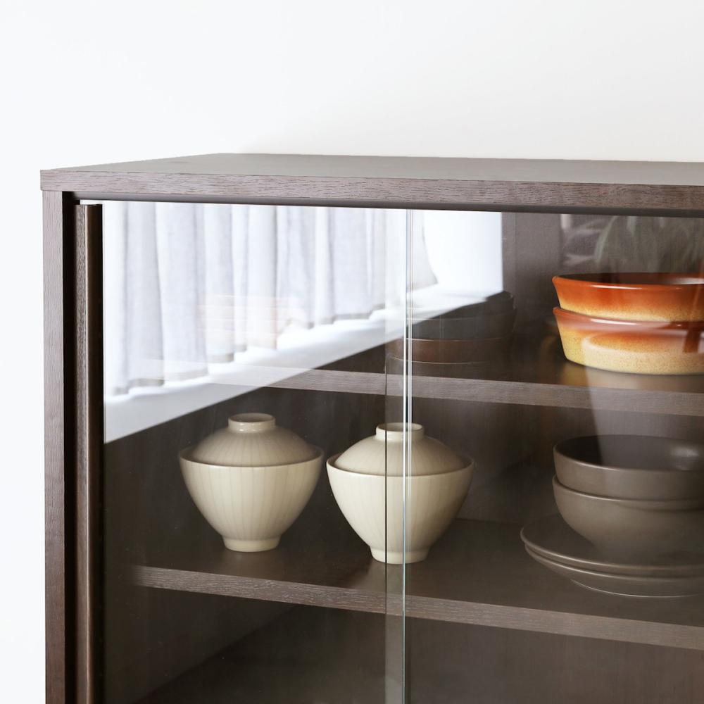■引き戸は透明ガラスだから、食器をおしゃれにディスプレイしながらきれいに収納することができます