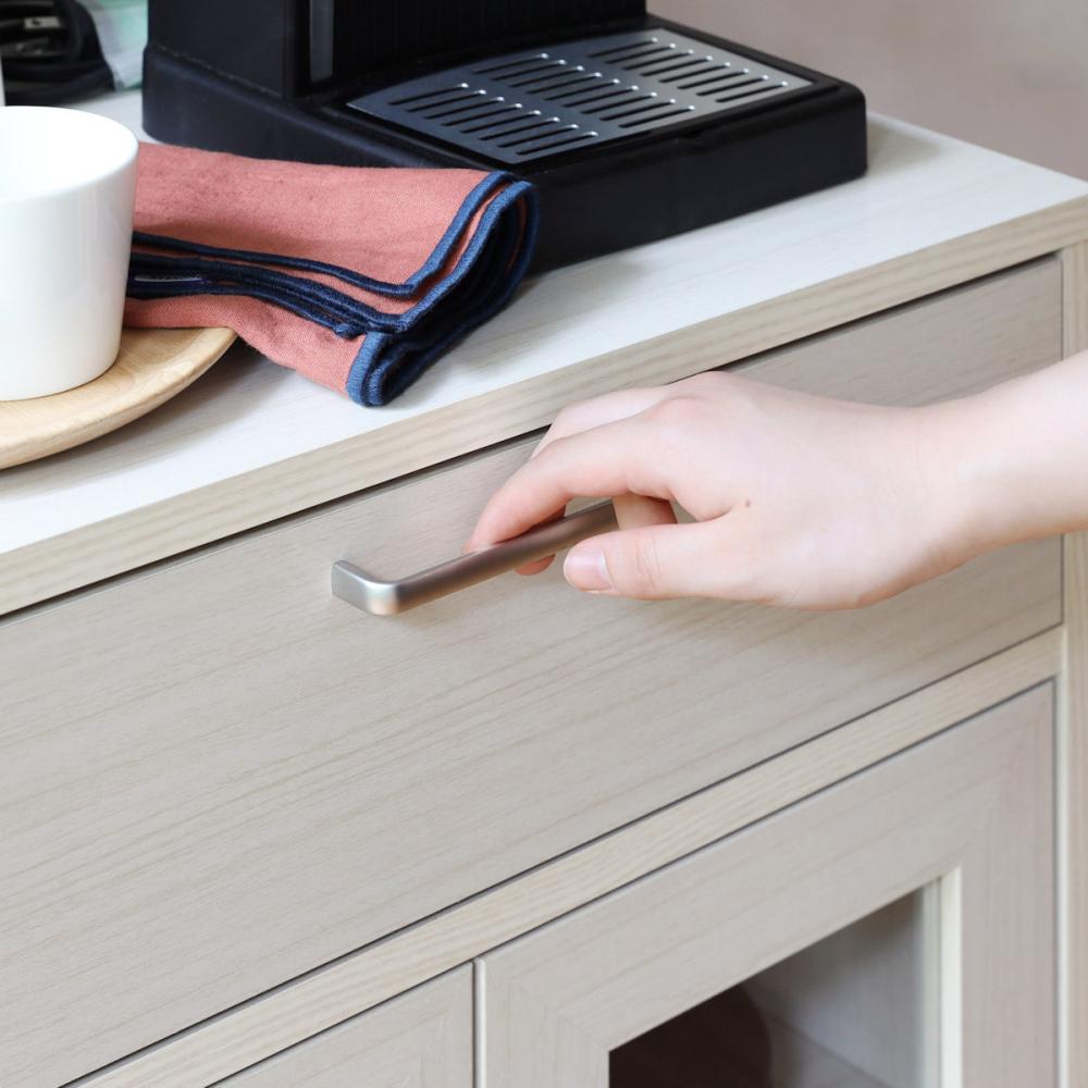 ■シンプルでつかみやすいシルバーの取っ手は、清潔でスタイリッシュな印象を与えます。