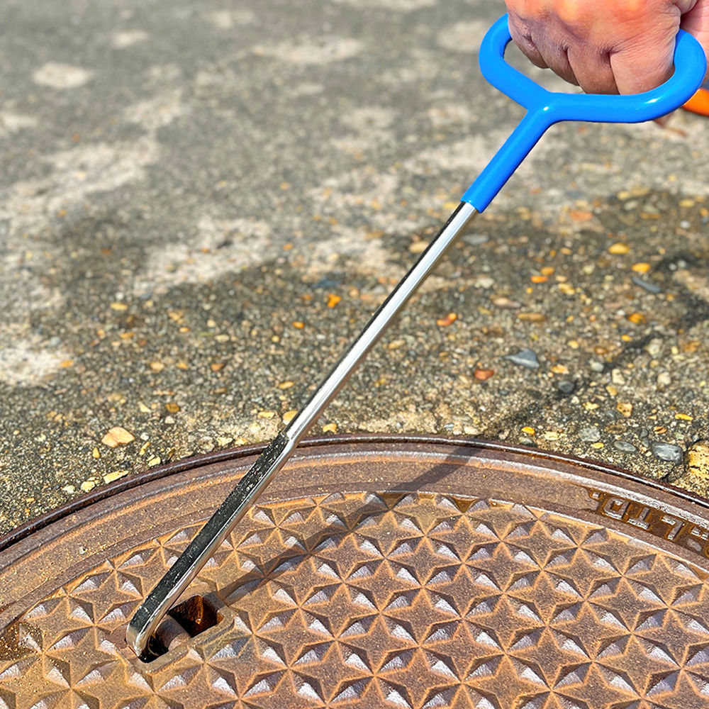 ●フック部は薄く平たく仕上げてありますので、奥行きが浅い穴のマンホールの蓋・量水器や浄化槽の蓋あげに対応出来る形状に仕上げました。 ●ハンドルはソフトPVCグリップで手への負担を軽減。”もちあげ君”と”もちあげさん”でカラーリングを変えたので一目でフックの形状を判別できます。 ●全長350mmのコンパクトサイズなので、コンテナや土嚢袋を移動する際の手カギとしても使用可能です。