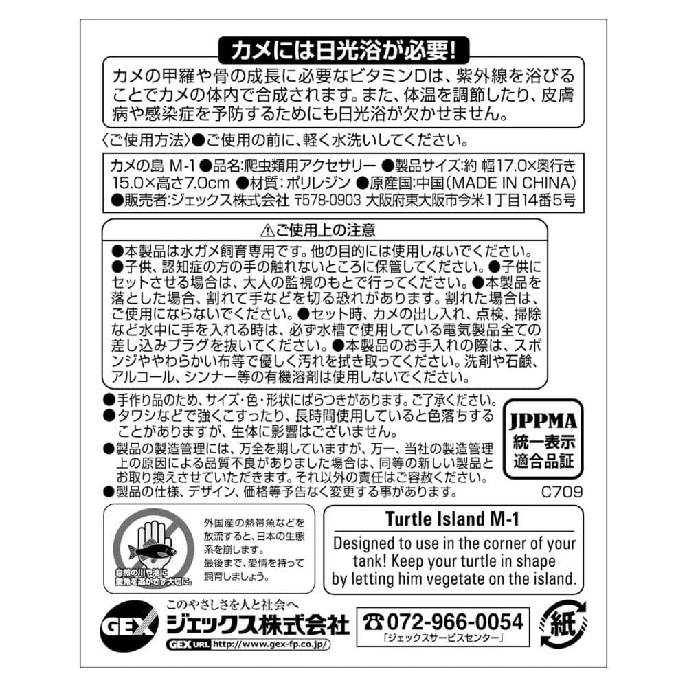 お取り扱い上の注意:・本製品は水ガメ飼育専用です。他の目的には使用しないでください。・子供、認知症の方の手の触れないところに保管してください。・子供にセットさせる場合は、大人の監視のもとで行ってください。・本製品を落とした場合、割れて手などを切る恐れがあります。割れた場合は、ご使用にならないでください。・セット時、カメの出し入れ、点検、掃除など水中に手を入れる時は、必ず水槽で使用している電気製品全ての差し込みプラグを抜いてください。・本製品のお手入れの際は、スポンジややわらかい布等で優しく汚れを拭き取ってください。洗剤や石鹸、アルコール、シンナー等の有機溶剤は使用しないでください。