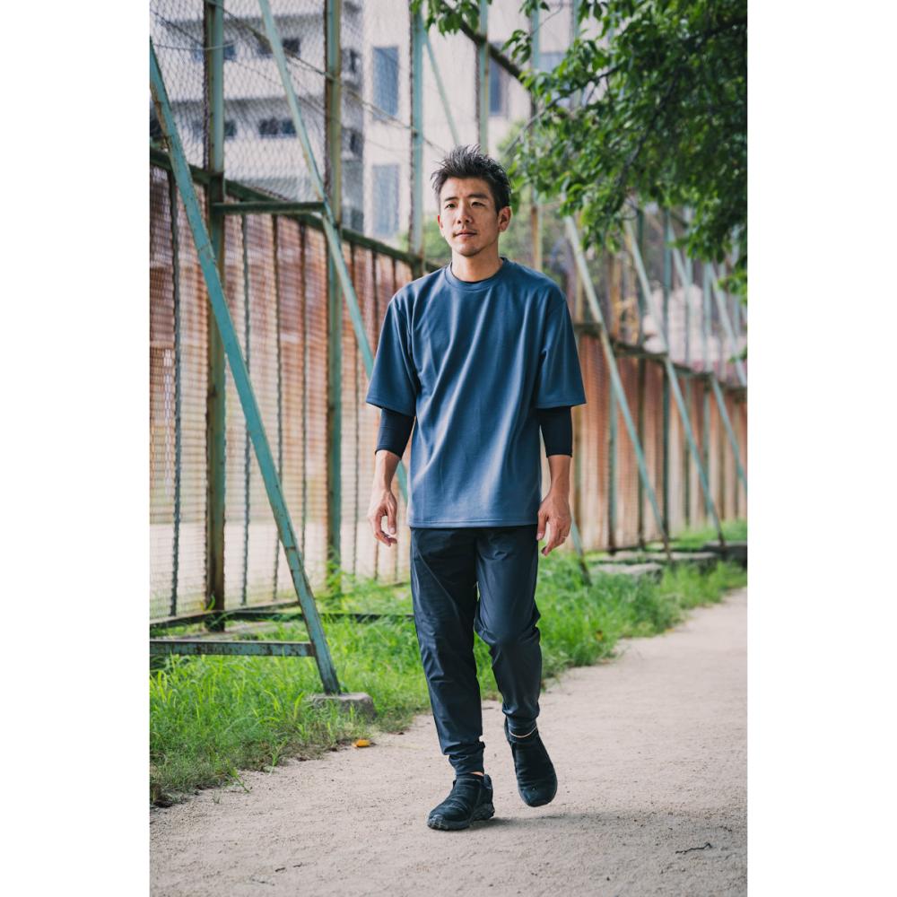 冷感加工を施した布帛ようなニットのジョガーパンツ