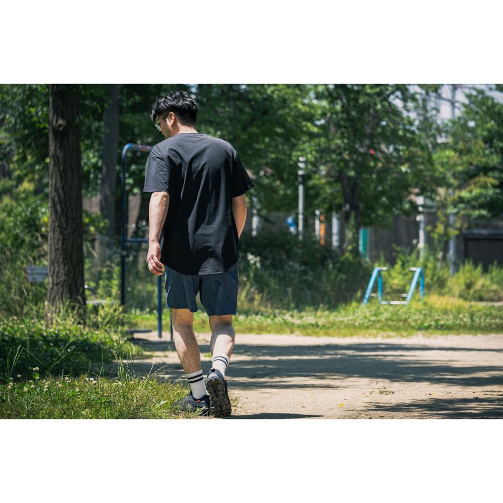裾をカーブカッティングしたオーバーサイズTシャツ。