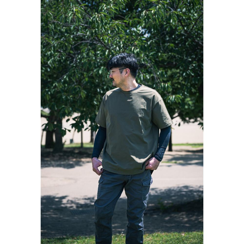 裾をカーブカッティングしたオーバーサイズTシャツ。