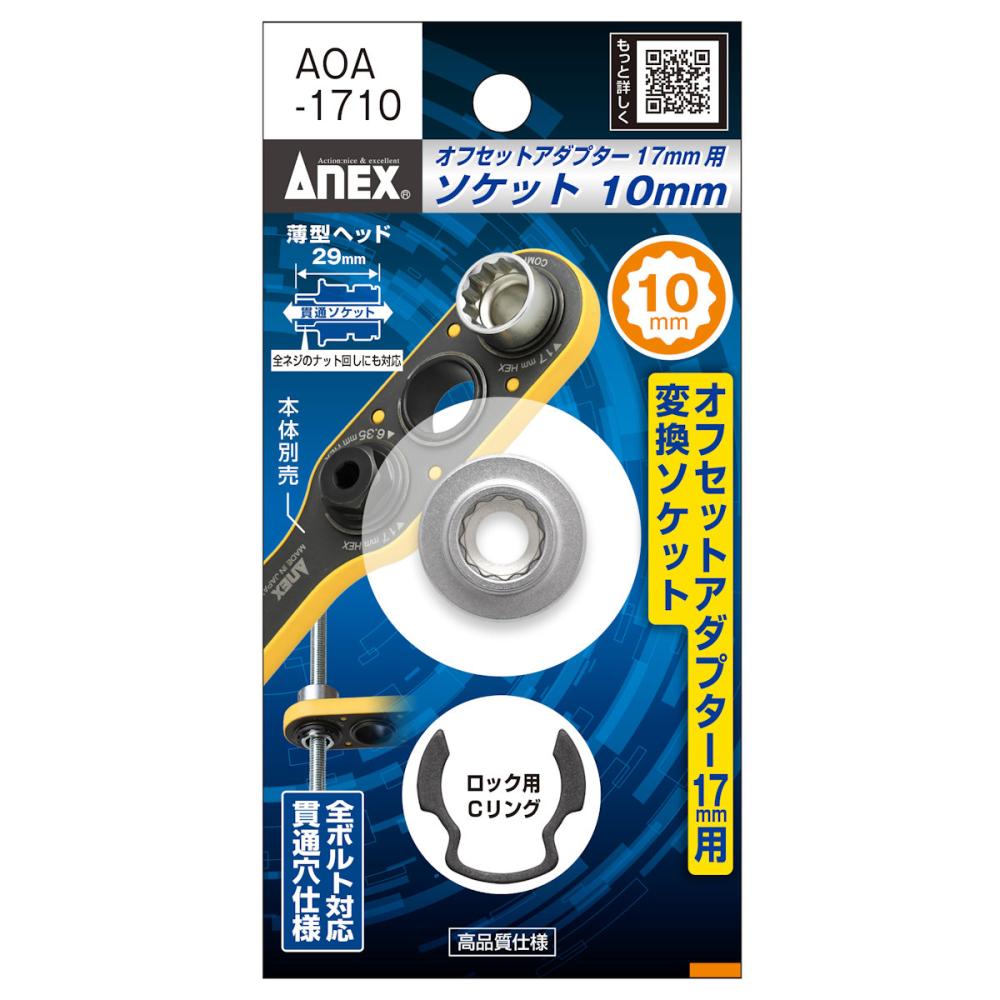 セット内容 ●H10mmソケット ●AOA-17mm専用Cリング(1ヶ) ●差込みやすい12角です。 ●ソケット抜け防止のCリング付です。 ●全ネジに対応した貫通穴仕様です。 用途 ●電気設備の架台、ダクトレール周りのボルト・ナット回しに 材質 ●ソケット:合金鋼 ●Cリング:炭素鋼