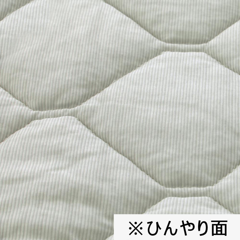 ●暑い時期は接触冷感のひんやり面、肌寒い時期はパイル面など季節に合わせて使い分けができるリバーシブルタイプ。