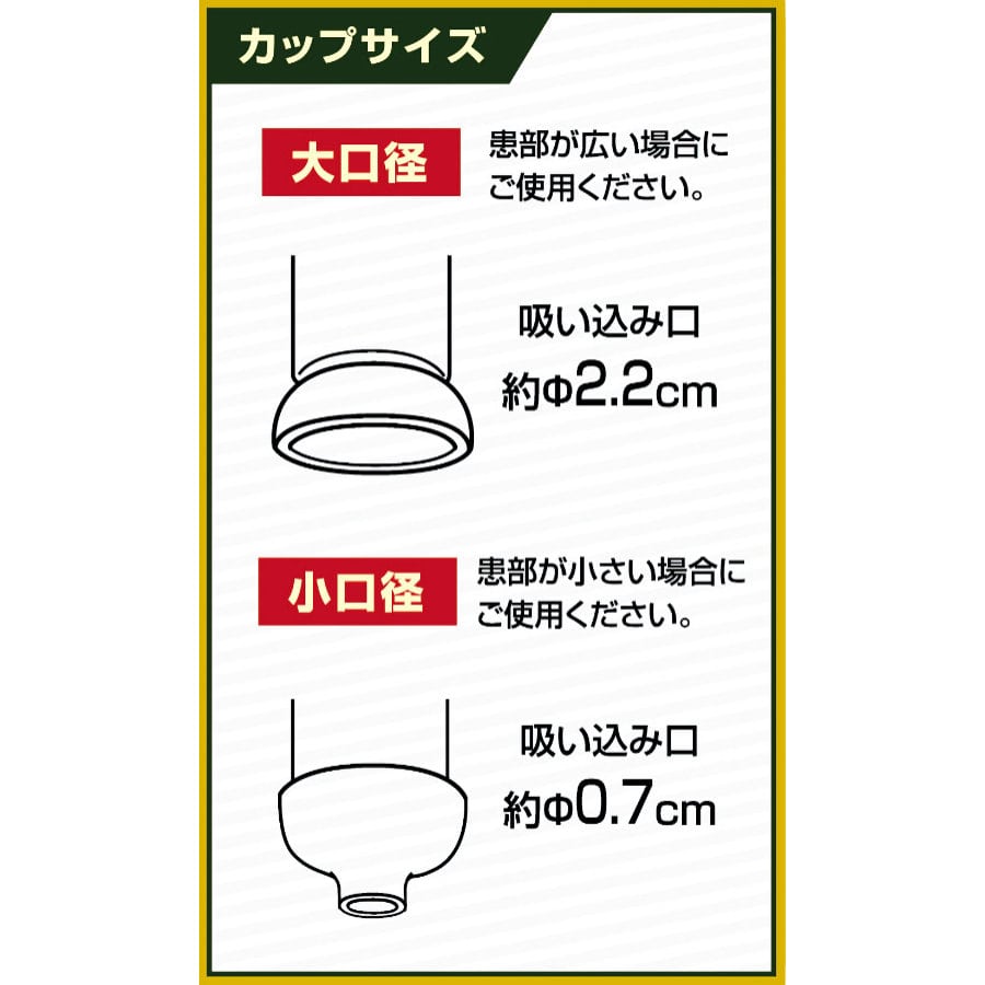患部の大きさによって使い分けできる2種類の吸い口カップ付き
