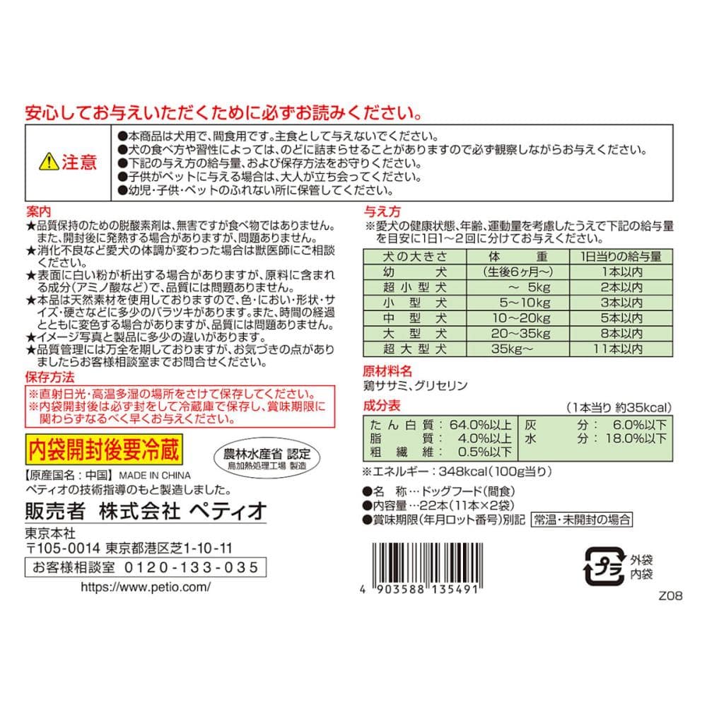 原材料・成分:鶏ササミ、グリセリン