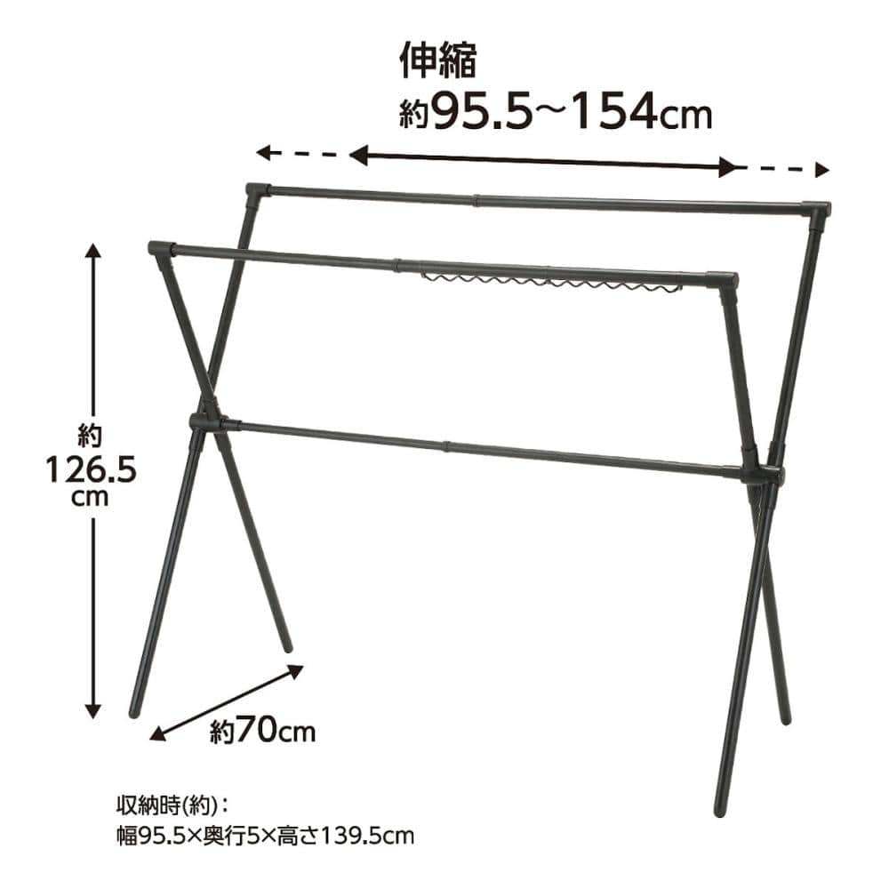■幅約95.5~154cmまで伸縮が可能。布団も干せる安定感!